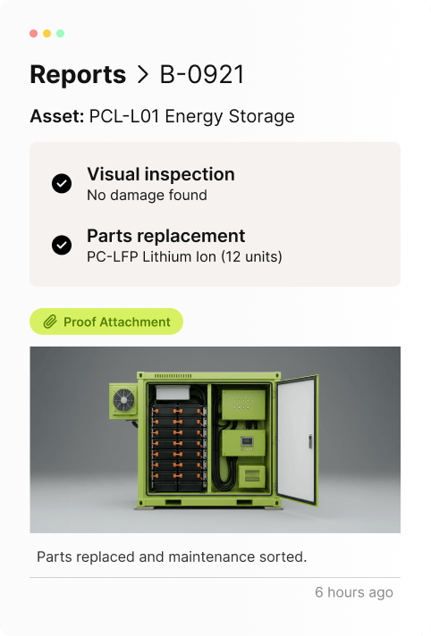 Dispatch technicians, track every battery module, and create safety logs that fire marshals trust. We help you go from a screen alert to a finished repair.