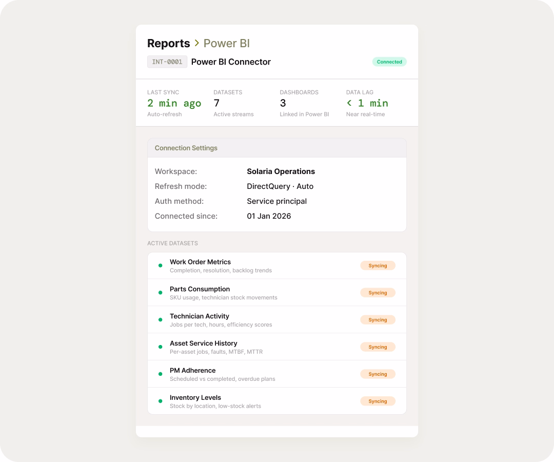 FieldEx has a built-in Power BI connector. If your business already runs dashboards or your stakeholders want data visualized their way, connect FieldEx directly and build on top of it. No data exports and no manual refreshes needed.
